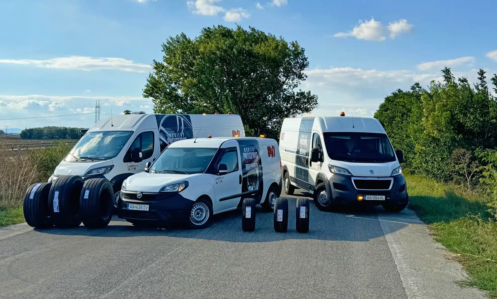 Naše mobilné pneuservisy su pripravené vyraziť k vám z našich pobočiek v mestách Bratislava, Trnava a Nitra.